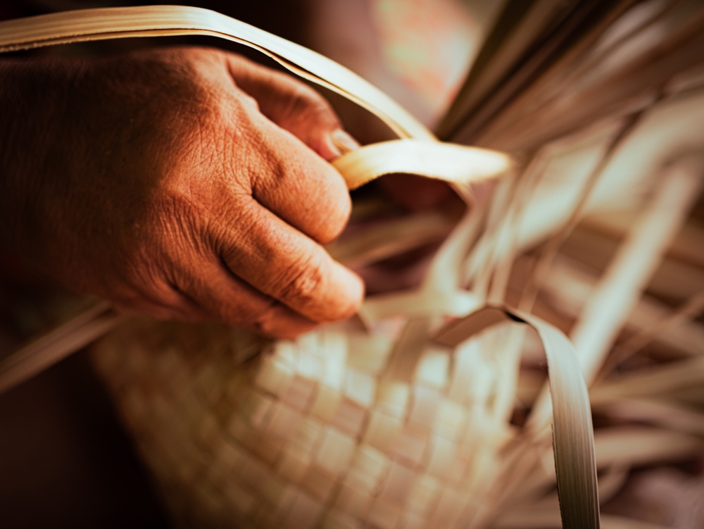 A woman who weaves the starw as she would tell a story , with love, precision and devotion.